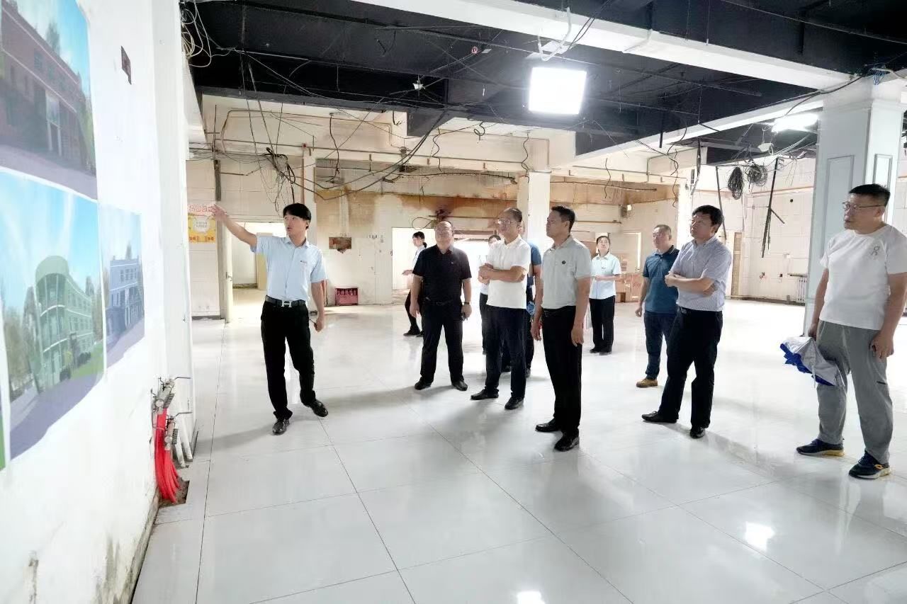 (图1:校领导深入改造现场调研食堂升级改造工作)