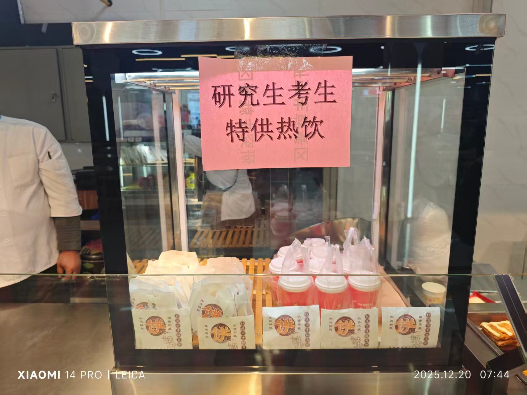 ——美食助力,提供充足营养支持。饮食服务部聚焦考生需求,制定科学合理的膳食方案,精心搭配菜品,注重营养均衡和口味多样性。组织各学生食堂设置考研就餐专区,确保考生能够吃得饱、吃得好。考试期间,饮食服务部共接待就餐考生1400余人次。同时免费为考生发放祝福小礼物、制作暖心热饮,以细致服务传递校园温暖。 商业服务部强化校内商户监管,重点核查商品质量、保质期与价格。同时,提前检查调试考场楼内自动售货机、咖啡机,保障设备正常运行,方便考生安全购物。
